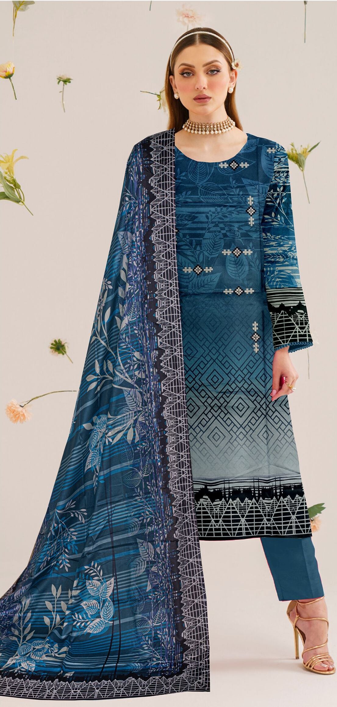 Digital Printed Lawn Shirt 2.75 M                                                                                              Digital Printed Voil Dupatta 2.25 M                                                                                            Plain Cotton Trouser 2.25 M